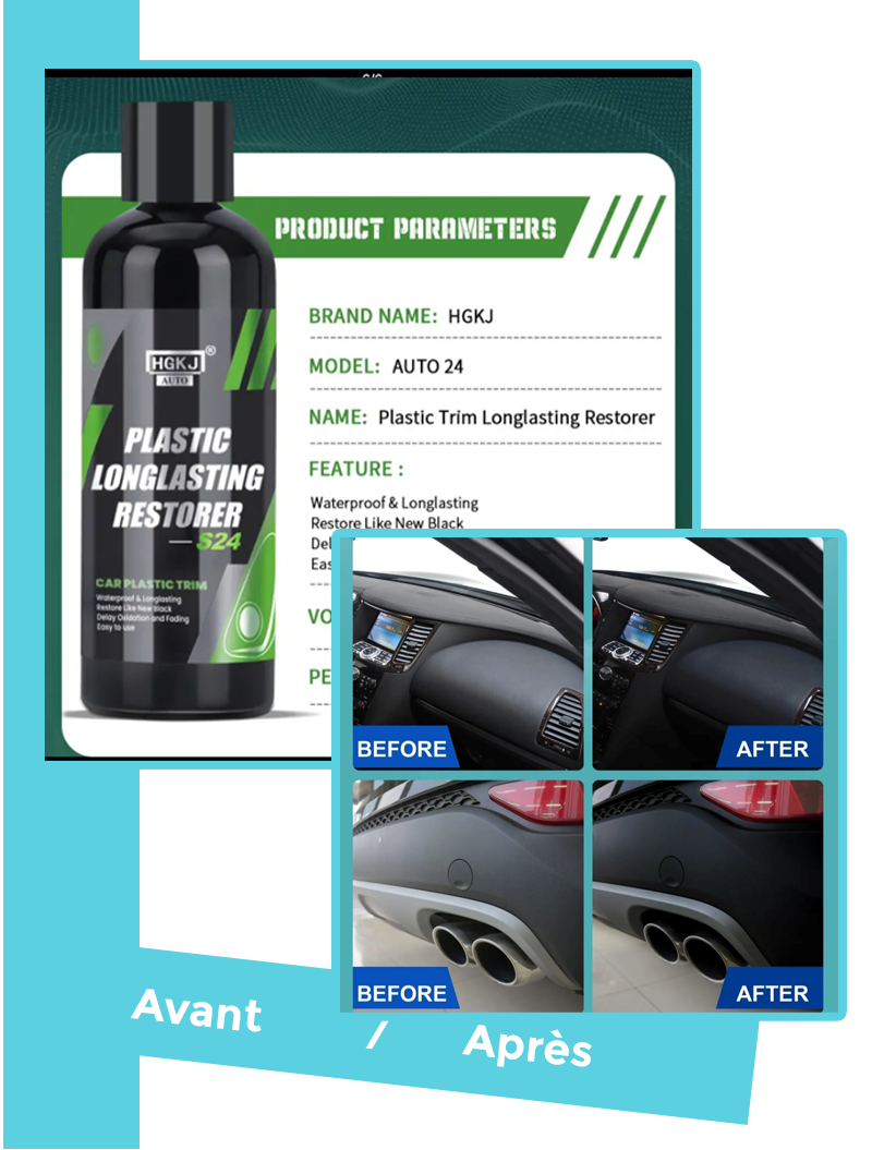 Ce restaurateur professionnel pour plastiques extérieurs (50ml) apporte une protection hydrophobe intense et un brillant profond qui résiste aux lavages et aux intempéries pendant plusieurs semaines. Fabriqué à Guangdong (Chine), sa formule avancée redonne aux plastiques ternis leur éclat neuf tout en les protégeant durablement.